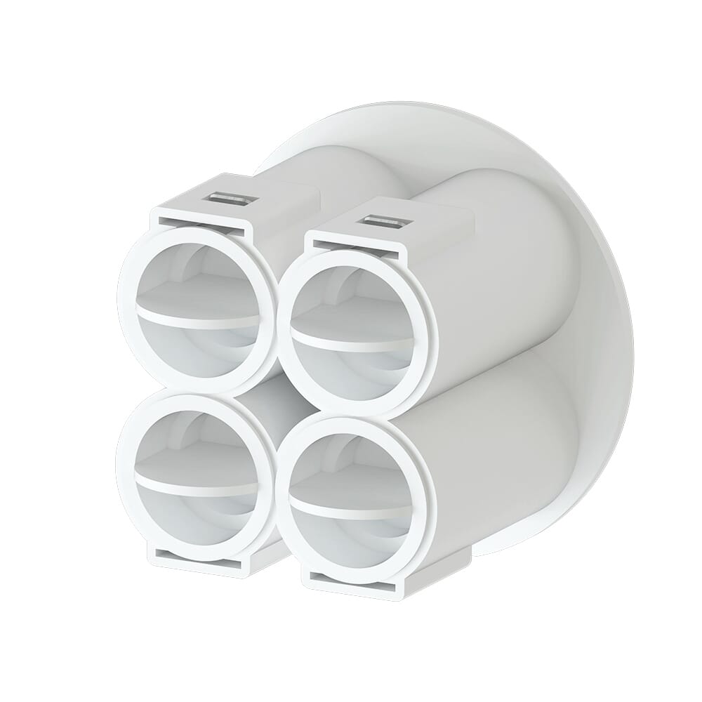 Stussen demonteres fra boksen ved å trekke stussen noe ut i øvre kant. Når låsetaggen er synlig vris stussen mot klokken og stussen er løs. Verktøy skal ikke brukes på stusser. Når stussen er tatt av kan skjøtestuss monteres ved å sette skjøtestykke i stusshullet og dreies med klokken 45 grader.