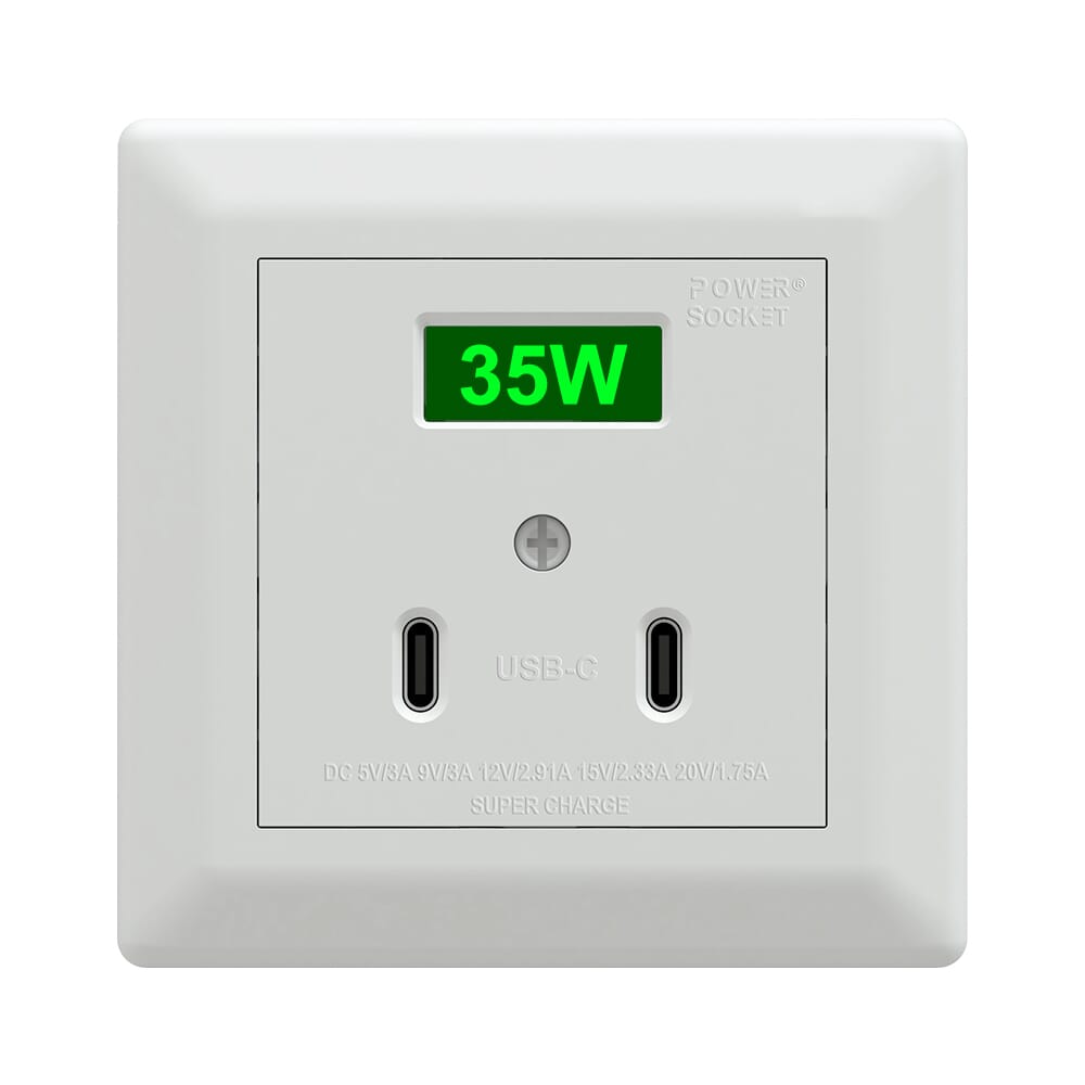 Power socket innfelt hurtiglader 2 x USC-C 35W polarhvit