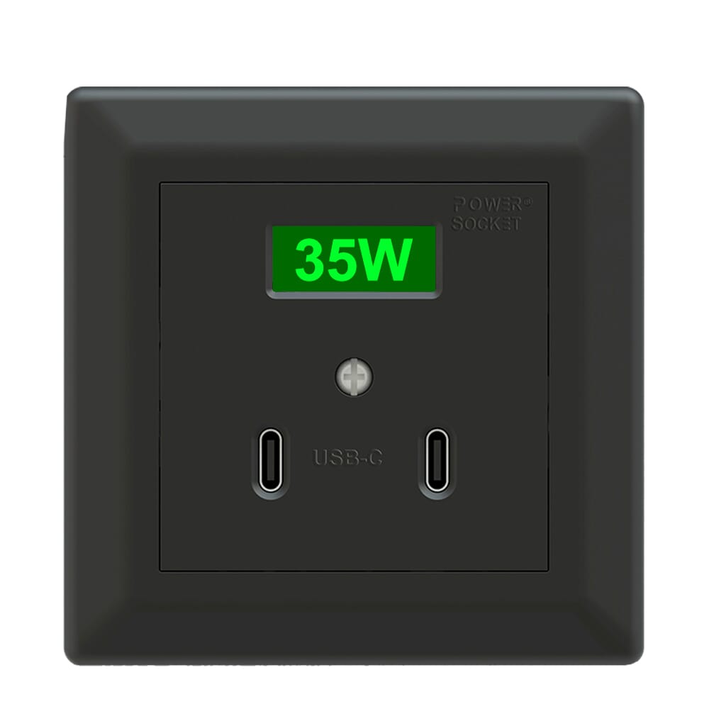 Temolink Powersocket tilkobles nettspenning (230V) og har 35W total ladeeffekt.