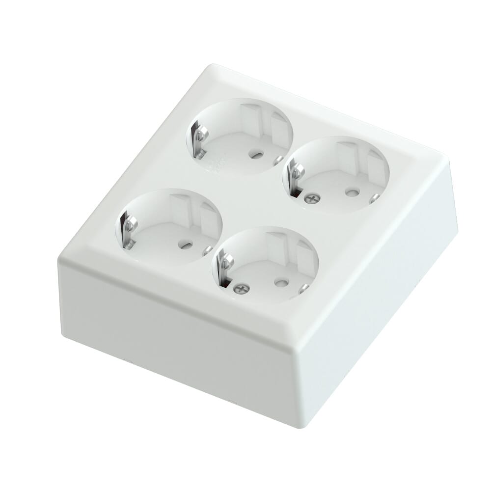 Temo Euro Classic 4-veis stikkontakt påvegg polarhvit 16A/J