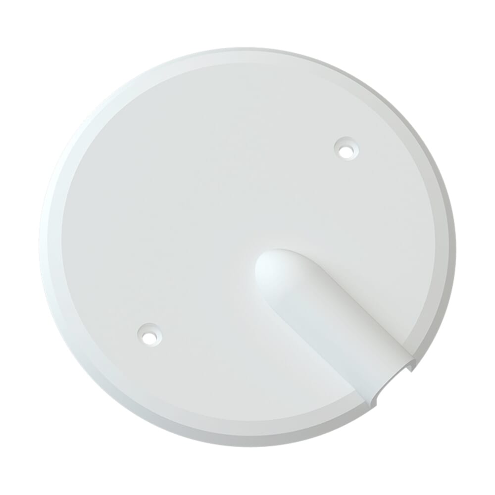 Hvitt, rundt vegglokk med utsparing. Lokket måler 90mm i diameter, og er produsert i materiale som består av et lavhalogen kunststoff, som er flammehemmende og selvslukkende. Fås også i sort.