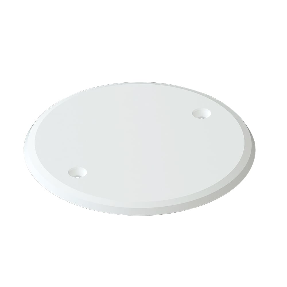 Et hvitt, rundt taklokk. Materialet består av et lavhalogen kunststoff, som er flammehemmende og selvslukkende. Fås også i sort.