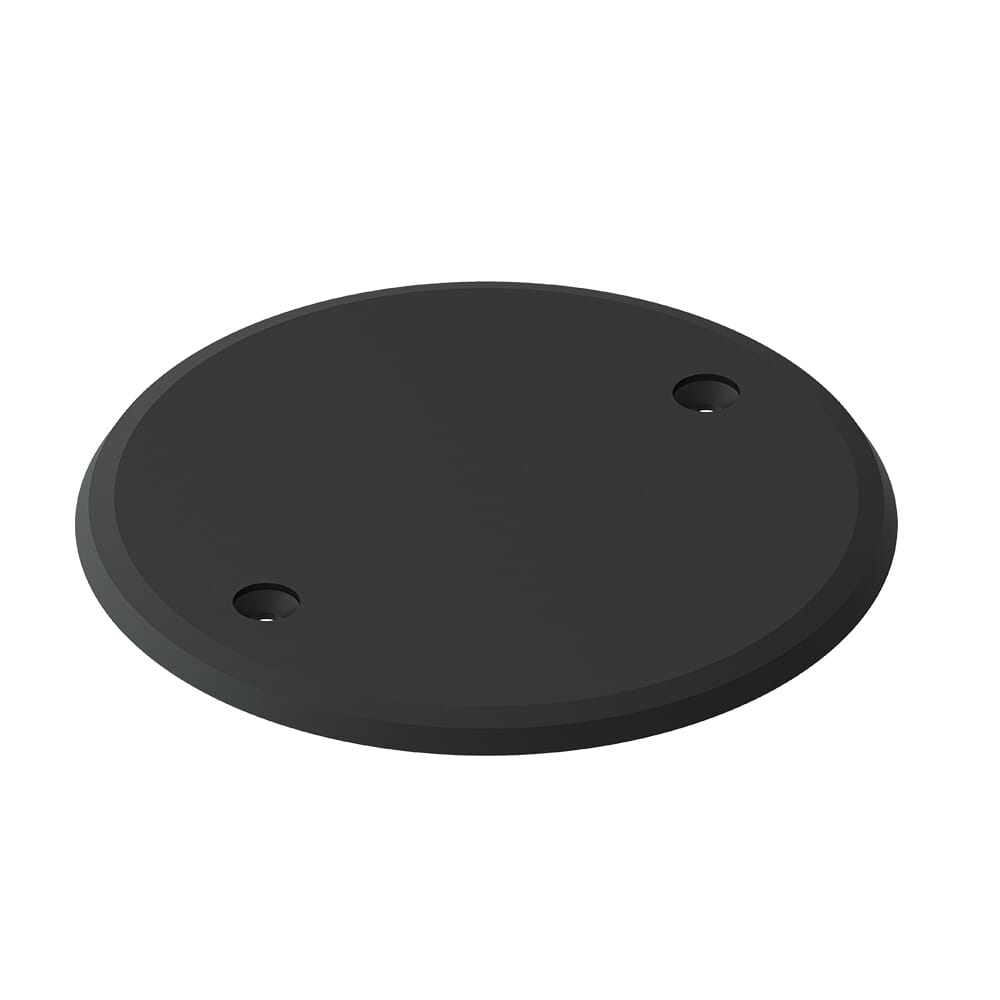 Et sort, rundt taklokk. Materialet består av et lavhalogen kunststoff, som er flammehemmende og selvslukkende. Fås også i hvitt.
